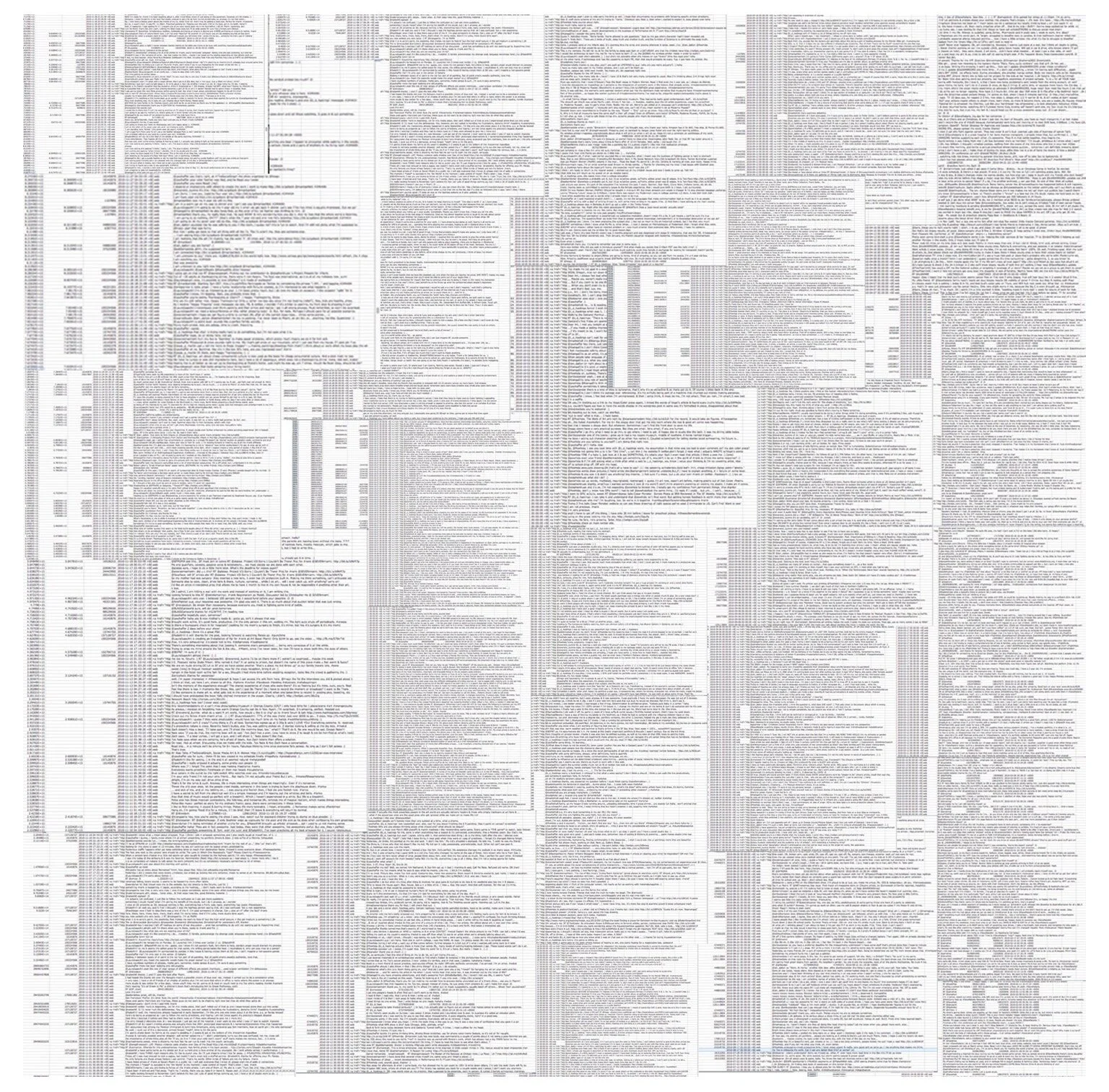 The 2010 archive of my tweets, from the day I joined Twitter until the day I finished the art project titled Anthropologic Study on Social Media (2010). Full series here.